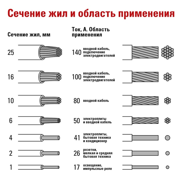 Принцип напоминает Вариант 2, отличаются лишь конструктивные особенности. Когда кабель мультипроволочный (в основе несколько жил), то стандартного измерения недостаточно, будут неточности, ведь между скрученными между собой проволоками есть зазор. С 1 или 2 вариантами следует вычислить диаметр, потом отдельно сечение проводника внутри мультипроволочного кабеля. Дальше выявить их общее количество и умножить получившееся число на это. Расчёт закончен. Осталось сравнить фактическое сечение с данными по маркировкам кабелей. Любое несовпадение данных – причина обратиться к продавцу, т.к. изделие не качественное.