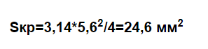Например, есть ВВГнг трехжильный кабель. Упаковка вскрыта, обозначений производителя нет. Замер жилы выявил диаметр 5,6 мм. Подставив эти данные в показанную ниже формулу, получаем:
