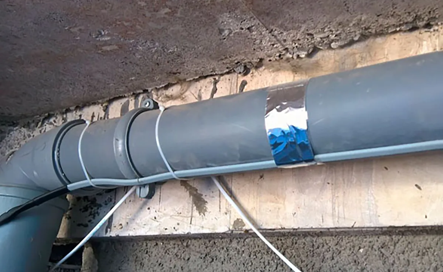 Рабочее пространство следует подготовить, убрав ненужные элементы, распределить кабель по длине вдоль трубы. Лучше расположить внизу, на месте протекания воды. Затем стяжкой закрепить в нескольких местах для надёжности.