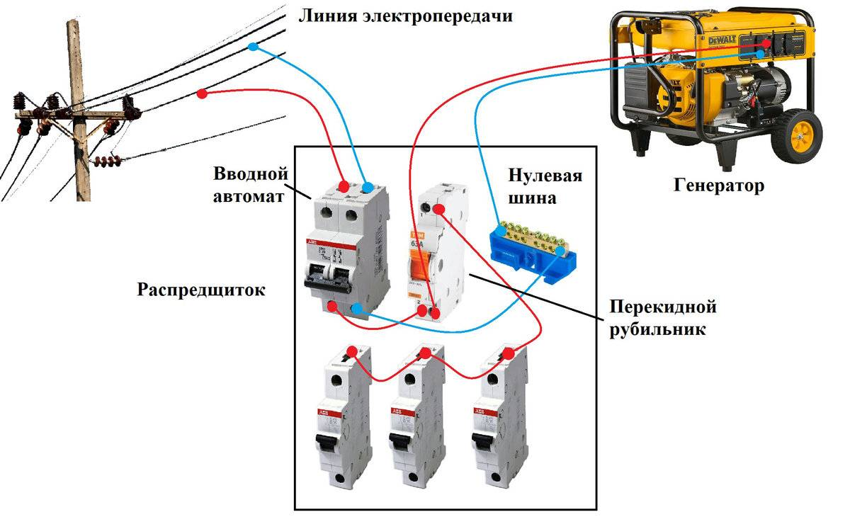Рубильник включается вручную, что требует присутствия человека, пусть и минимизирует ошибки. У рубильника 3 положения всего: соединение нагрузки тока к основному (центральная сеть) источнику / резервному (генератор) / нейтральное.