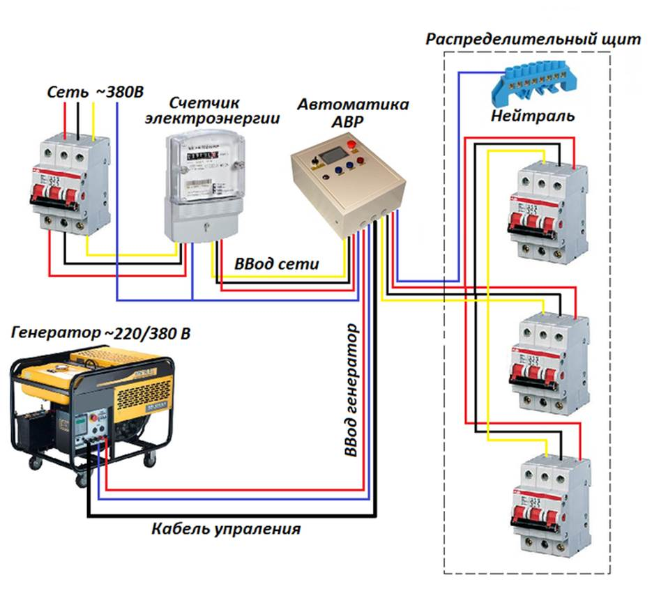 АВР (автоматический ввод резерва) – специальное оборудование, способное перераспределять нагрузку с основного при отключении, на резервное питание. Такой АВР работает односторонне, зато участие человека минимальное – достаточно завести генератор, как пропадёт свет в доме и выключить потом. Это обеспечивает быстроту (минус время прогрева устройства) и возможность избежать ошибок, что возникают, если действовать второпях и в темноте. Из минусов – установка АВР требует наличия специальных навыков, лучше доверить специалисту. И генератор все равно придётся включать самостоятельно, даже оснащённый стартером. Агрегат не сразу активирует рабочий режим, требуется выждать, пока не прогреется.
