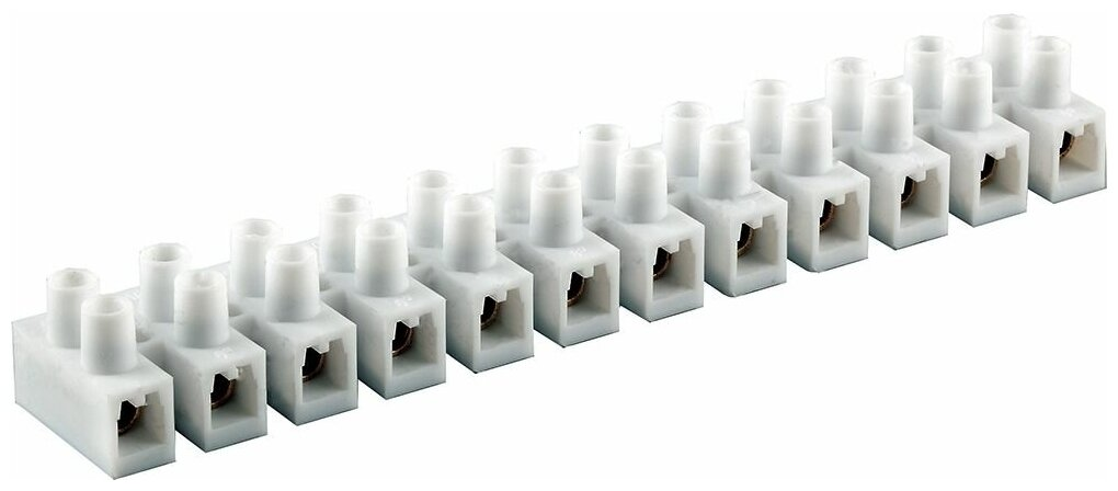 Клеммные колодки – довольно простой вариант, используется внутри распределительных коробок и при подключении к сети осветительных приборов. Колодка – латунная втулка в пластиковом корпусе. Чтобы внутри неё крепить концы проводов, надо вручную вкрутить винты с отвёрткой, при этом размер колодки должен соответствовать диаметру сечения проводов. Многопроводниковые кабели соединяются наконечниками. Основной минус – так можно соединить 2 кабеля с одинаковыми жилами.
