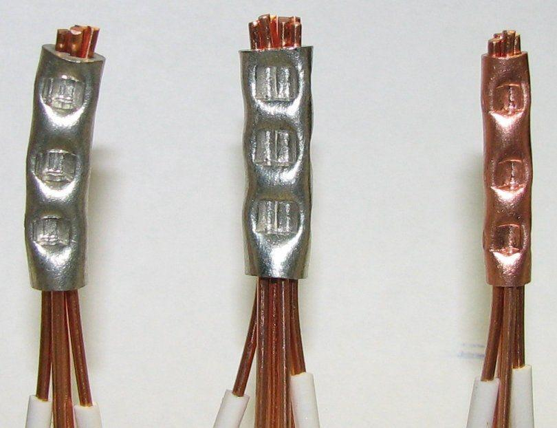 Опрессовка с гильзами – надёжно соединяет края проводов. Одних гильз мало, нужны пресс – клещи и термоусадочная трубка, обеспечивающая герметичность места соединения. Неразъёмный вариант, придётся обрезать и заново склеивать при ремонте с заменой гильзы.